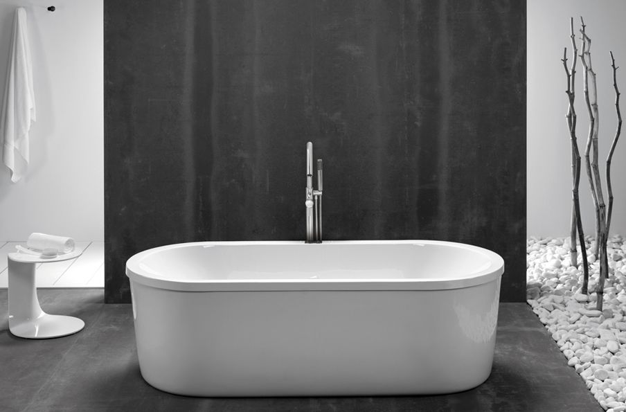 Optez pour cette baignoire design et assortissez-la avec des lavabos blancs épurés afin d'obtenir une décoration moderne dans votre salle de bain.