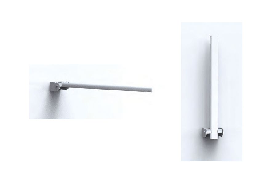 Barre de support rabattable constitué d'une seule pièce, sans joints, réalisé en acier pour une sécurité renforcée.