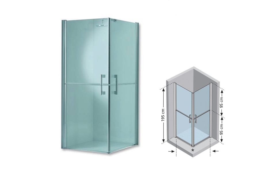 Cette cabine d'une hauteur de 195cm possède des portes en verre trempé transparent qu s'ouvrent vers l'extérieur pour une entrée facilité.