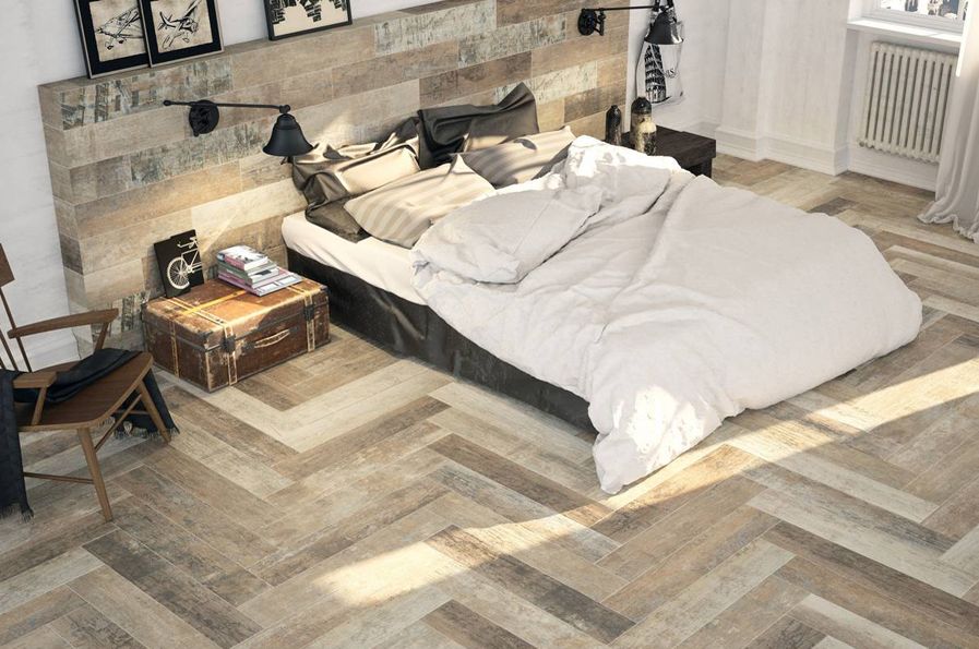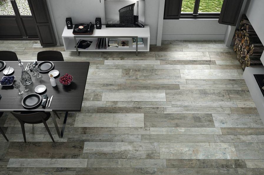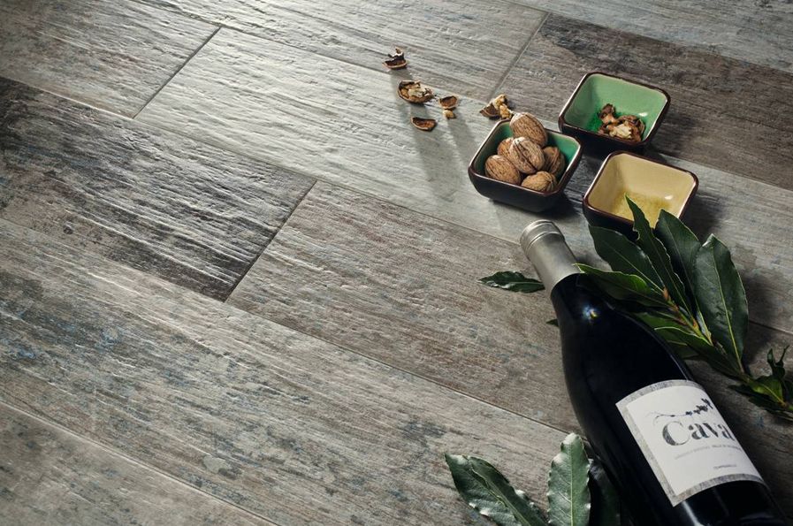 Voici Cava du fabricant Grespania, une version moderne du carrelage imitation bois.