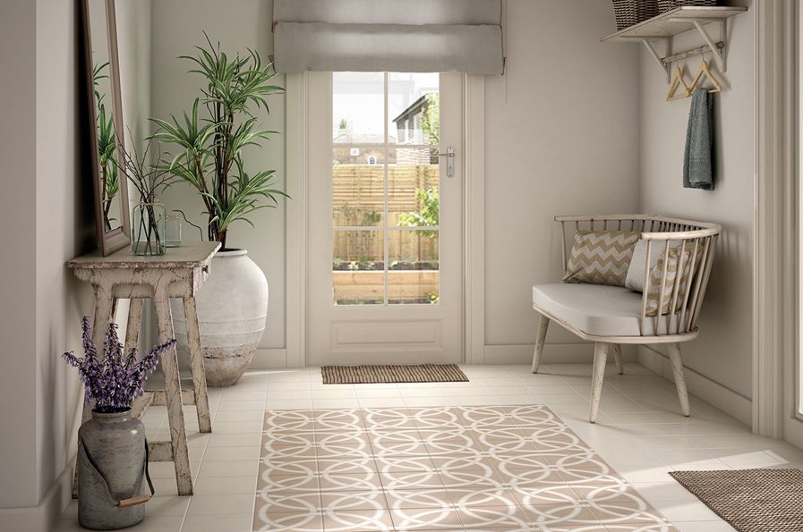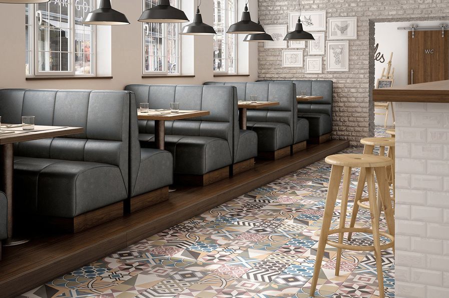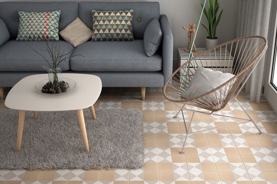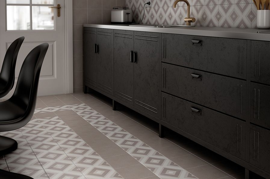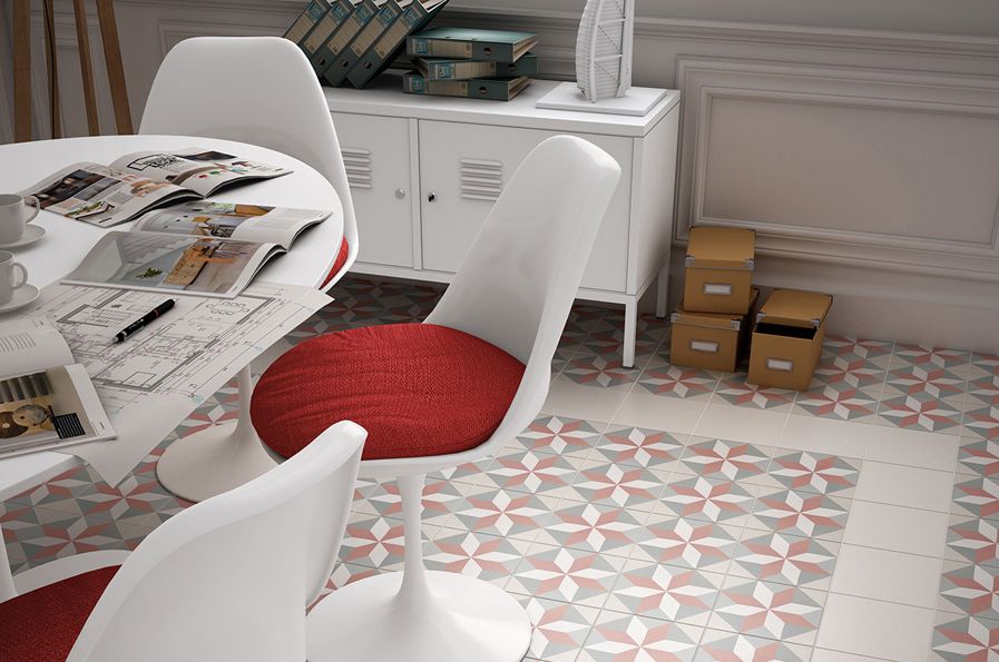 Le carrelage de la gamme Caprice propose plusieurs séries de motifs à l'imitation carreaux de ciment.