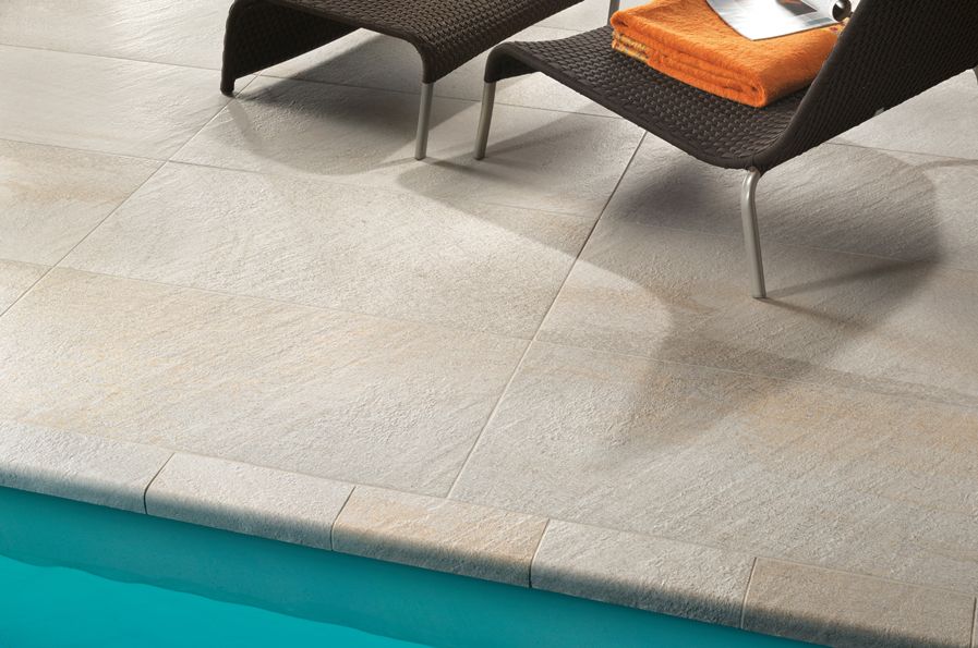 Ce grès cérame coloré dans la masse se propose en 3 tonalités sobres et idéales pour l'extérieur : Avorio, Grigio et Antracite.
