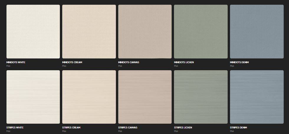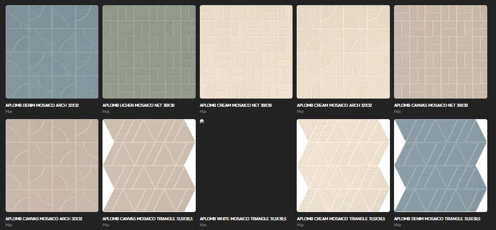 Pour une harmonie parfaite, la collection comprend aussi des mosaïques 30x30, aux trois finitions et cinq coloris identiques. Ce large choix permet une personnalisation fine et cohérente, adaptée aux projets les plus exigeants.