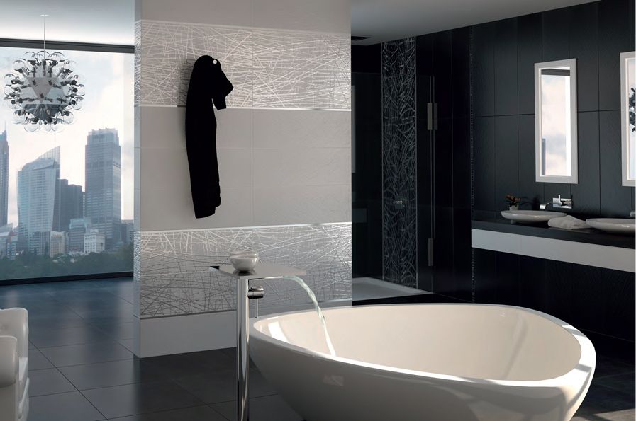 Proposition de l'équipe : Vous pourrez compléter cette décoration de grande classe avec les mosaïques, décors ou listels Astorga rainurés assortis.