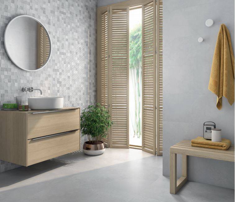 Son format 80x80 est une excellente solution pour en revêtir tout votre intérieur, du séjour jusqu'à la partie nuit. Il pourra même équiper votre salle de bain, avec une faïence de la même collection au format 30x90, rectifiée, de couleur blanche, grise ou aréna.