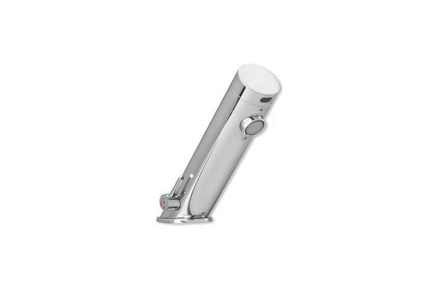 En laiton chromé, ce mitigeur robuste peut être réglé manuellement ou par télécommande. Quant aux autres caractéristiques du capteur (ouverture et fermeture pour la sécurité), celles ci sont réglables par télécommande.