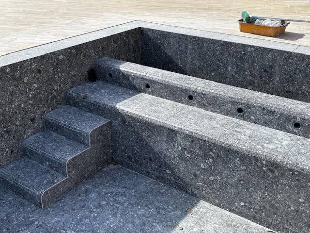 Le coloris anthracite, sélectionné pour cette piscine, offre une touche sophistiquée et intemporelle, idéale aussi bien pour les extérieurs que pour un usage intérieur.
