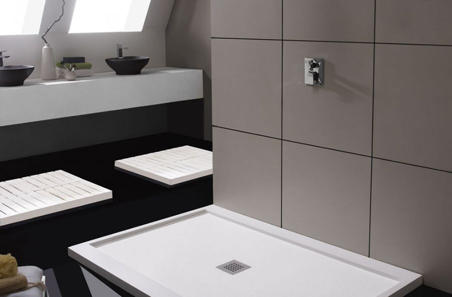 Ce receveur extra plat est réalisé en résine, finition ardoise.