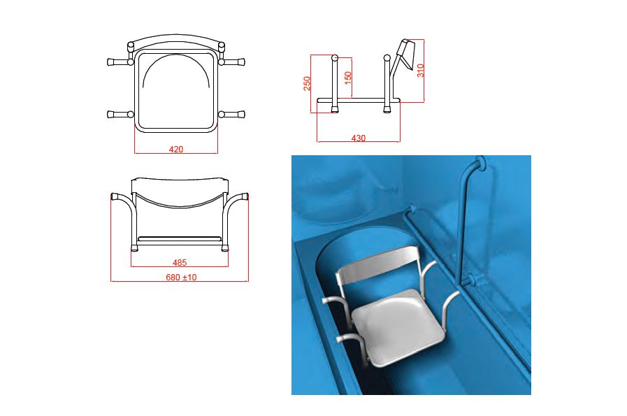 Cette assise anatomique pour une baignoire standard de 70 cm de largeur a une capacité de 150 kg et est composée de bouchons à ses extrémités.