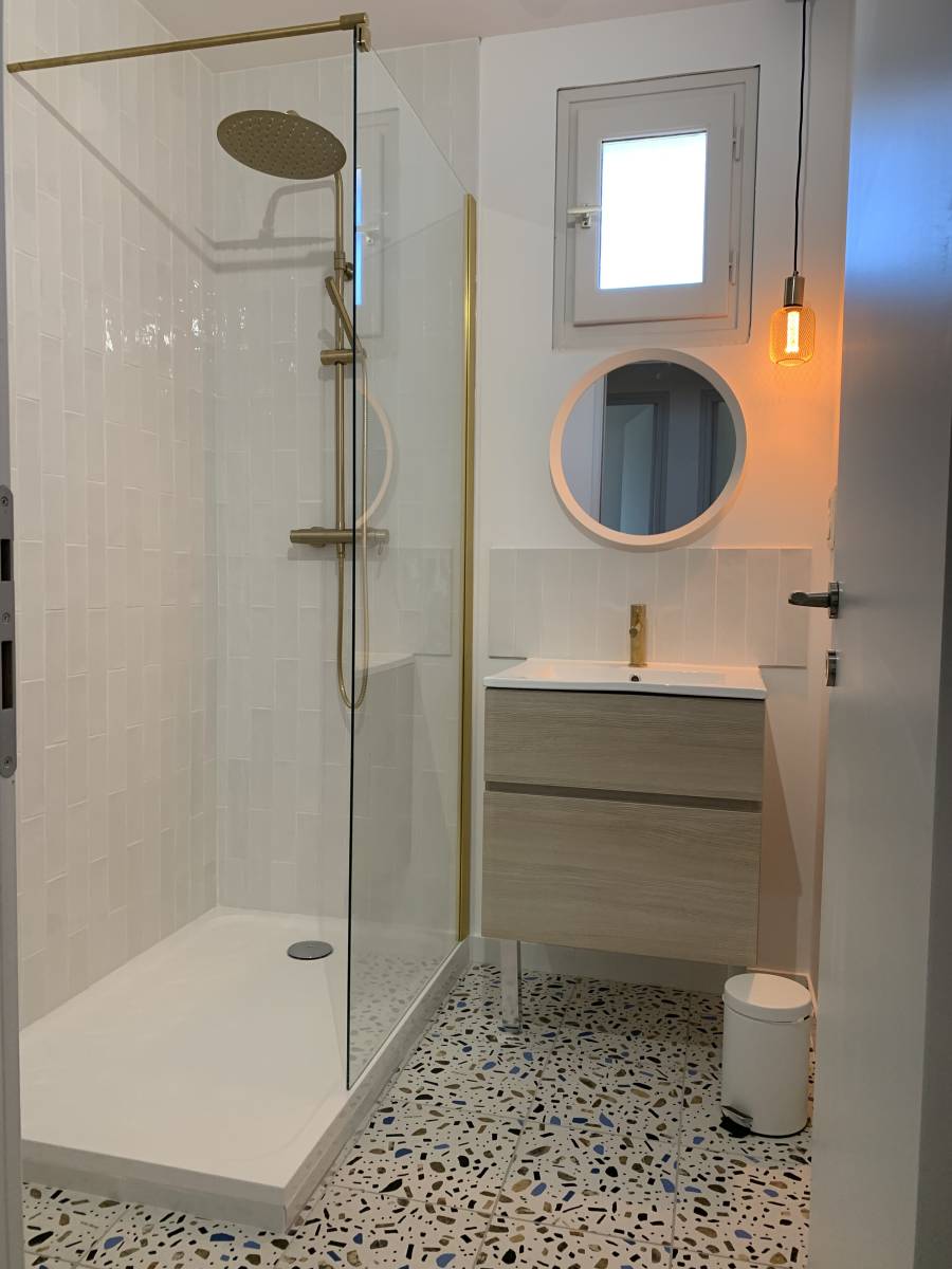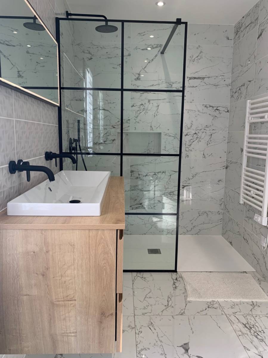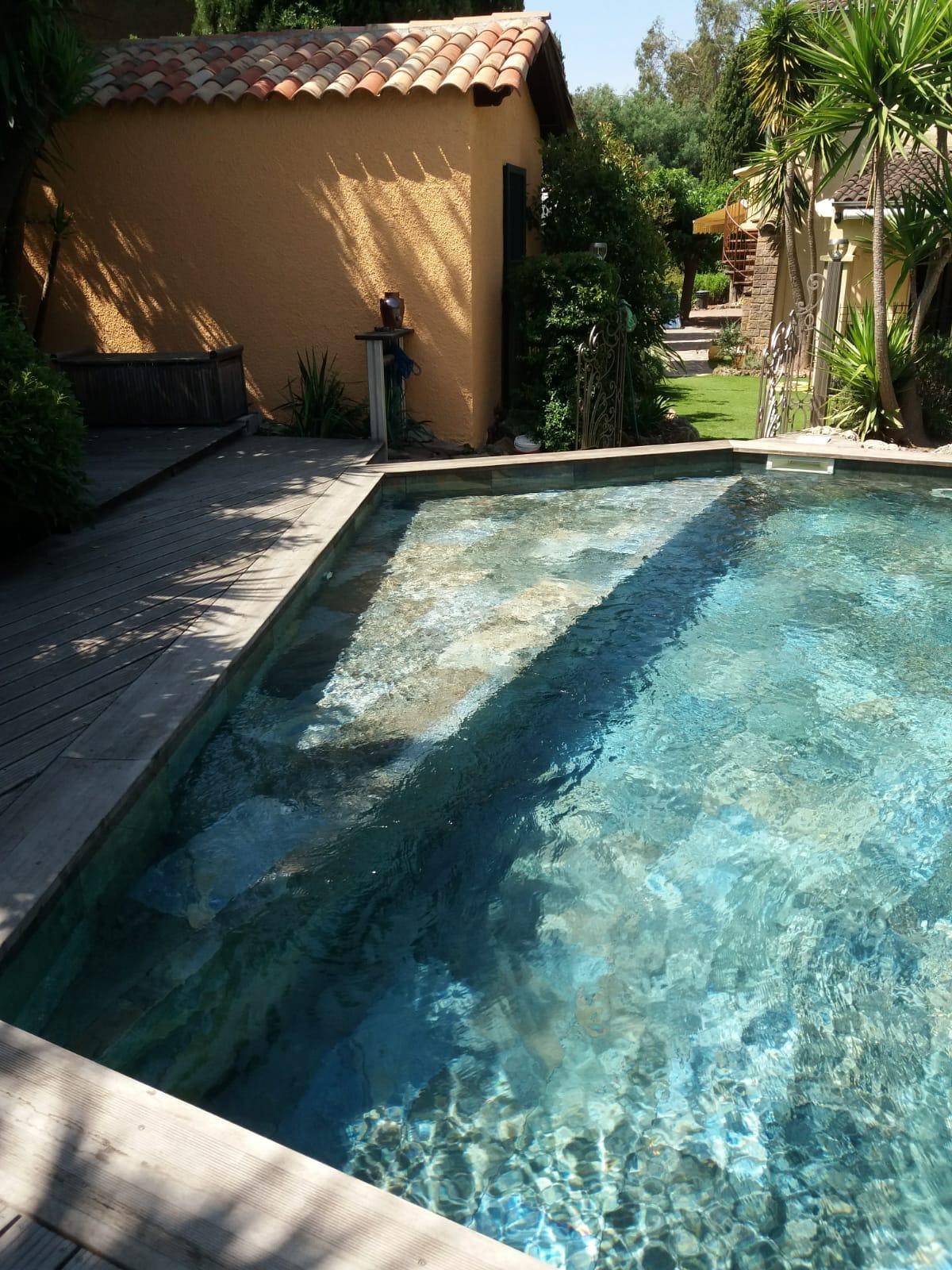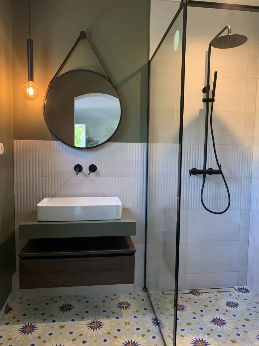 Terres d'Eden carrelage à Vedène et heureux de vous présenter quelques-unes de nos plus belles réalisations de salles de bains, suite parentale, également grès cérame pour piscine, une très belle imitation pierre de Bali près d'Avignon dans le Vaucluse.